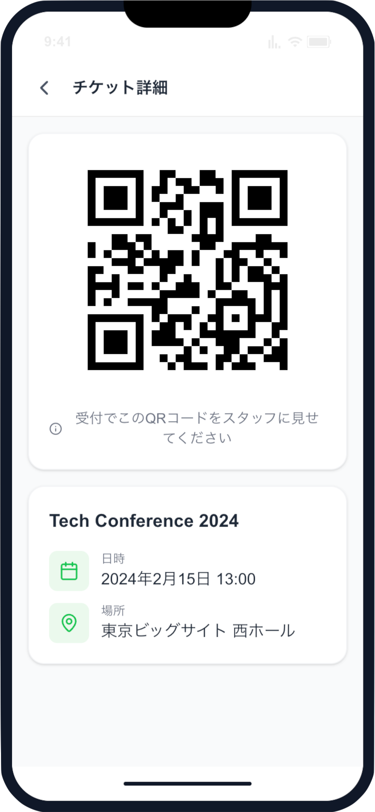 QRスキャンで入場チェックと入場ログを自動記録。受付スピードと正確性が同時に上がる。
